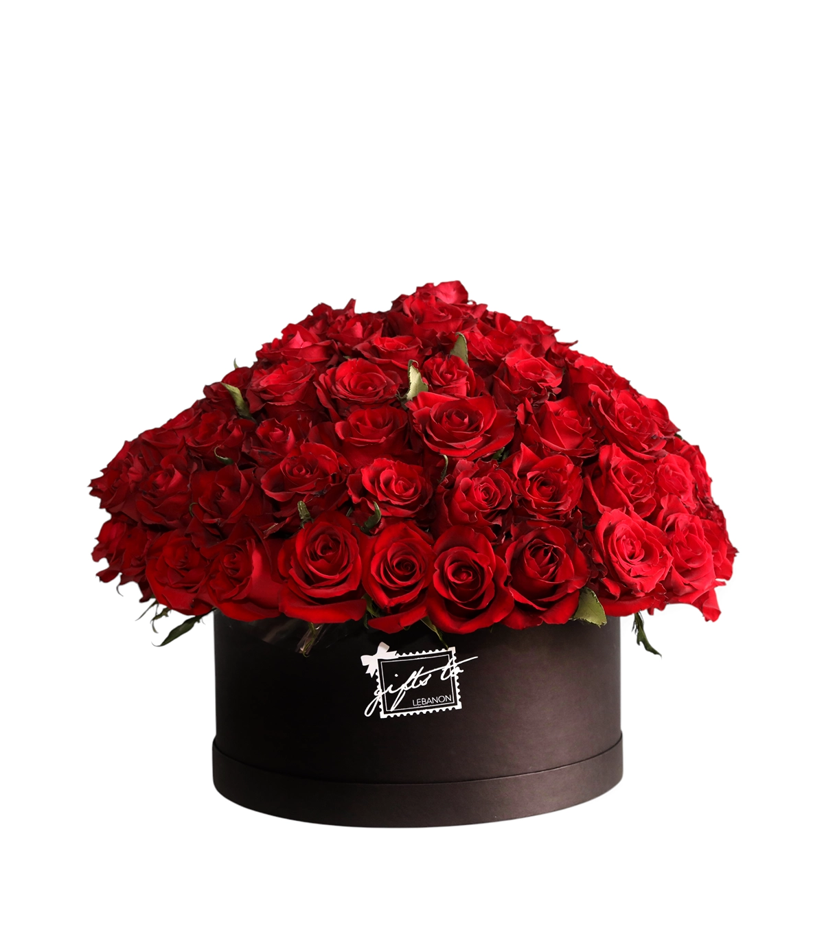 A breathtaking declaration of love, the 100 Moments of Love bouquet features 100 exquisite red roses arranged in a sleek round black box, creating a striking and elegant display. This arrangement is the ultimate symbol of passion, devotion, and timeless romance.