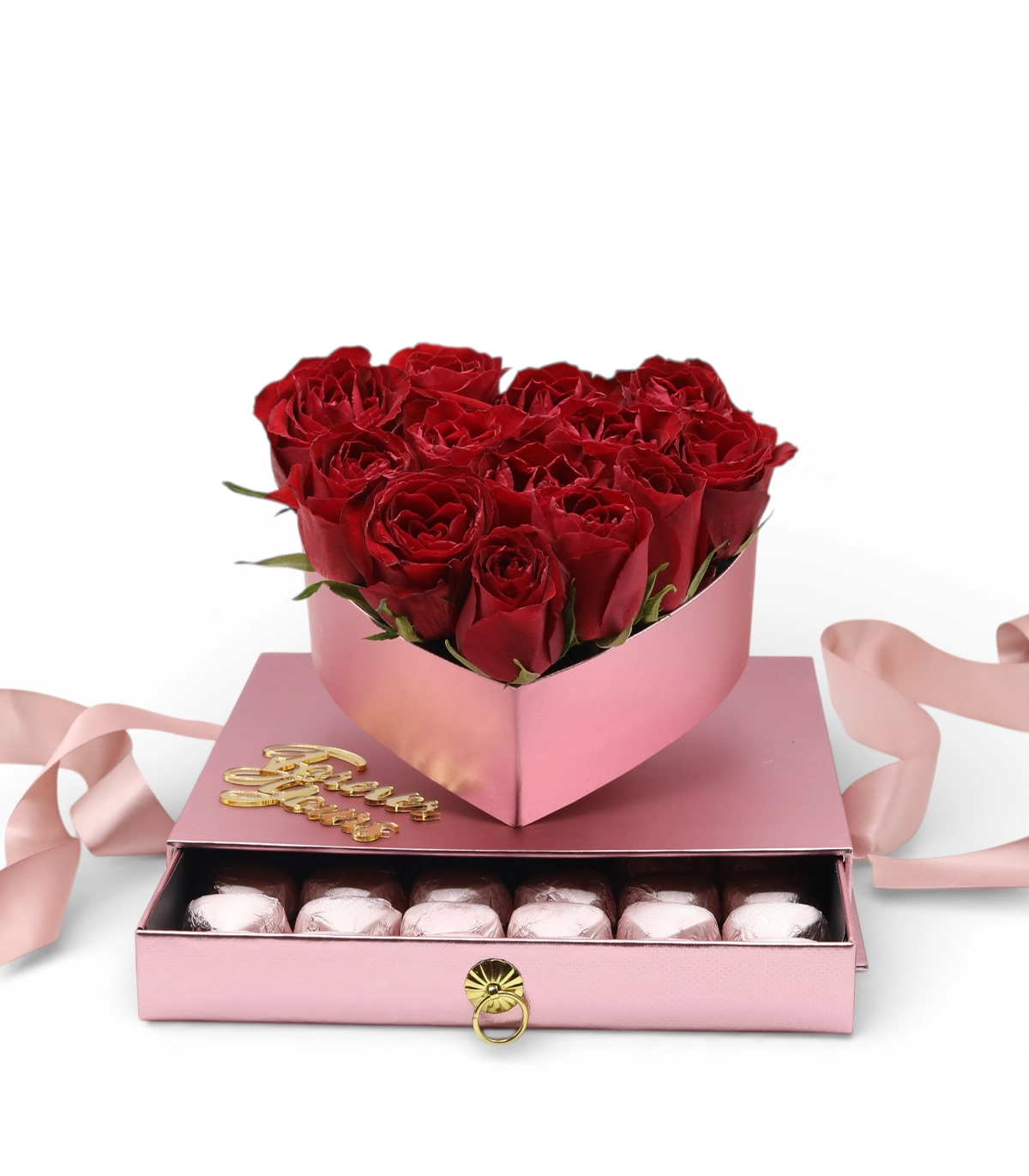 A romantic keepsake designed to say everything without words — filled with timeless red roses and indulgent chocolate hearts.