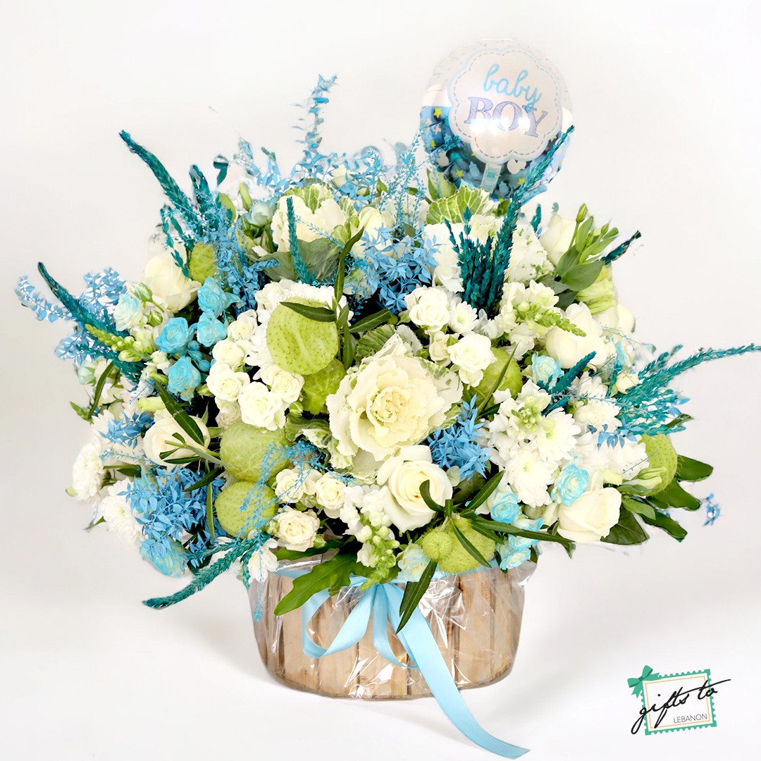 Celebrate the joy of new beginnings with our enchanting baby boy flower arrangement! Adorned with pristine white roses and seasonal blooms, it’s the perfect gift to welcome a precious baby boy into your loved ones’ lives. Embrace the beauty of nature and the magic of newborn bliss.