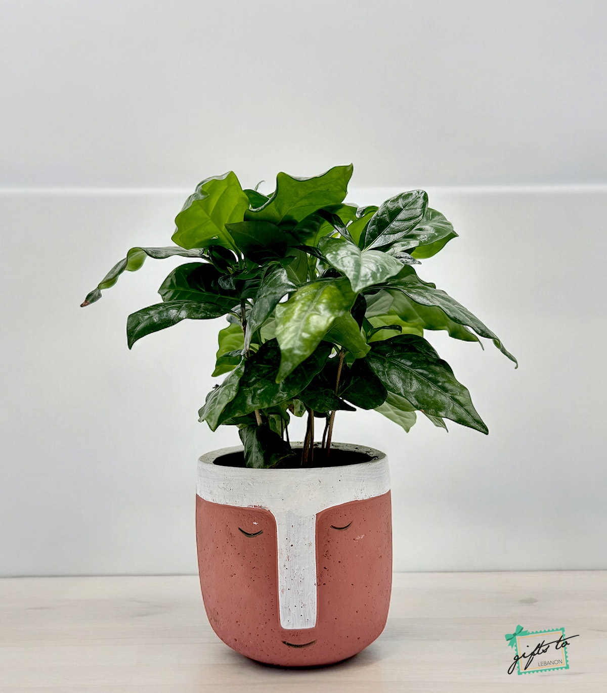- Coffee plant in face shaped ceramic pot