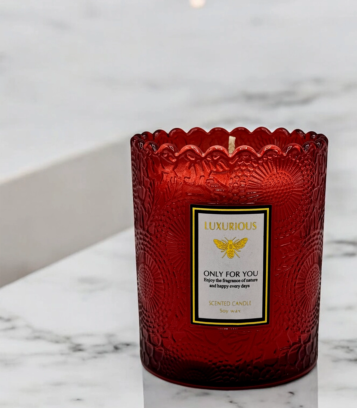 Scented soy wax candle in a glass jar – to create a warm, inviting atmosphere