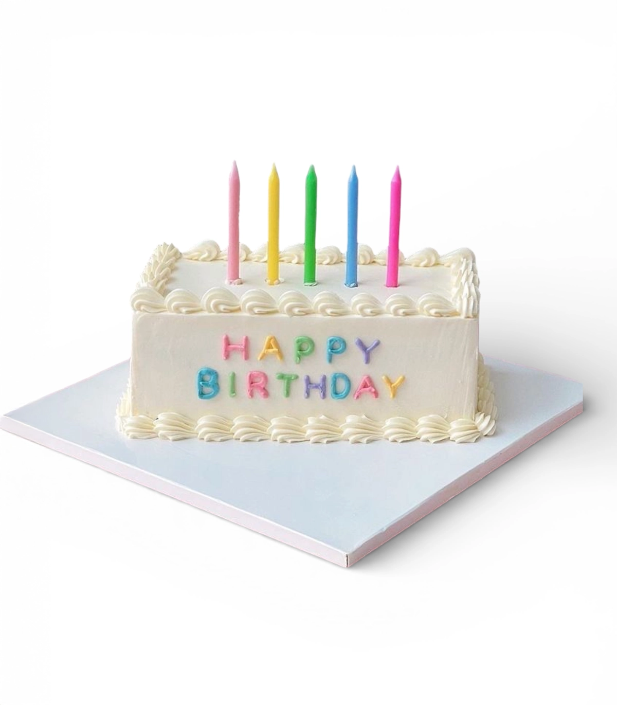 A timeless birthday cake with a clean finish and cheerful rainbow details โ perfect for celebrating another year in the sweetest way.