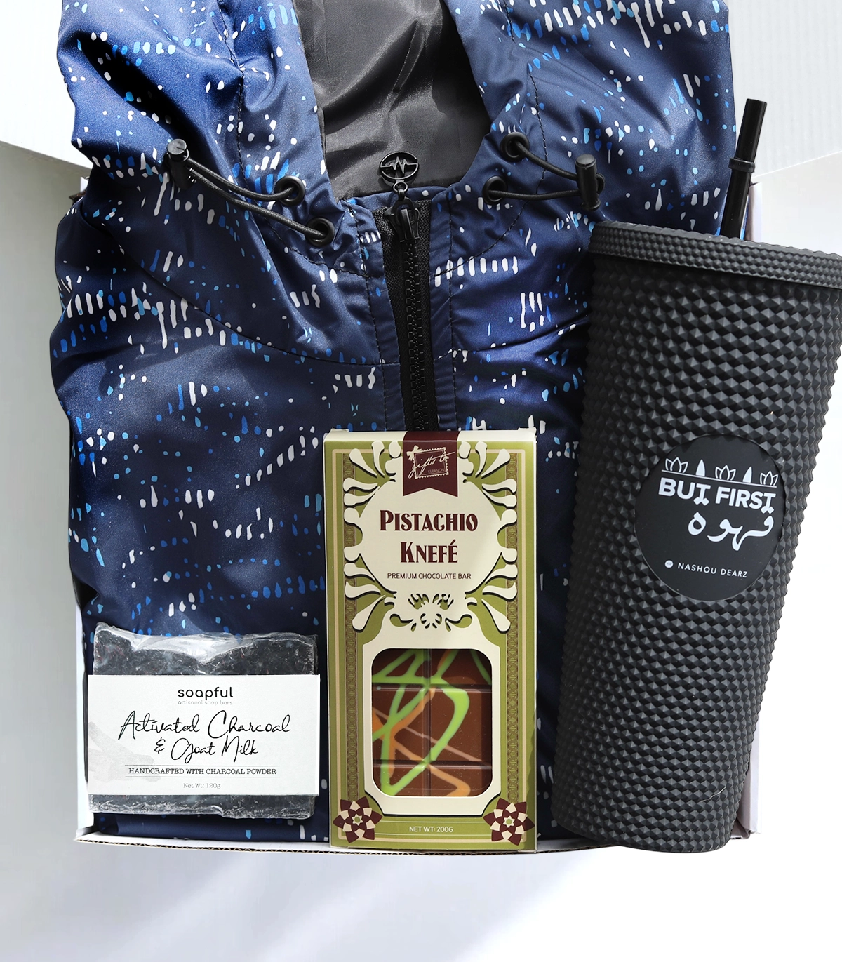 A practical yet thoughtful gift that blends style, self-care, and sweet indulgence — perfect for someone who loves comfort, coffee, and a little treat on the side.