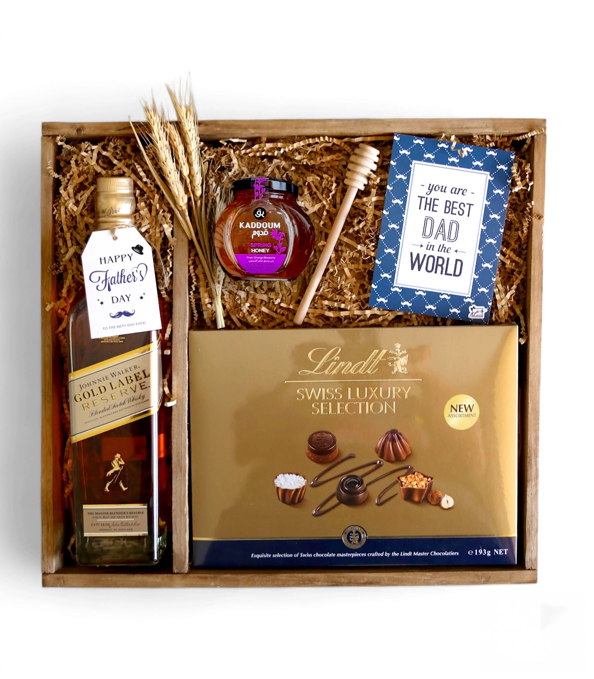 Dad deserves the best! Treat him to our luxury gift box: Johnny Walker Gold Label, Lindt chocolates, Armenian honey, & dipper. All in a beautiful wooden box & topped with a “BEST DAD” card. The perfect Father’s Day (or any day!) gift.