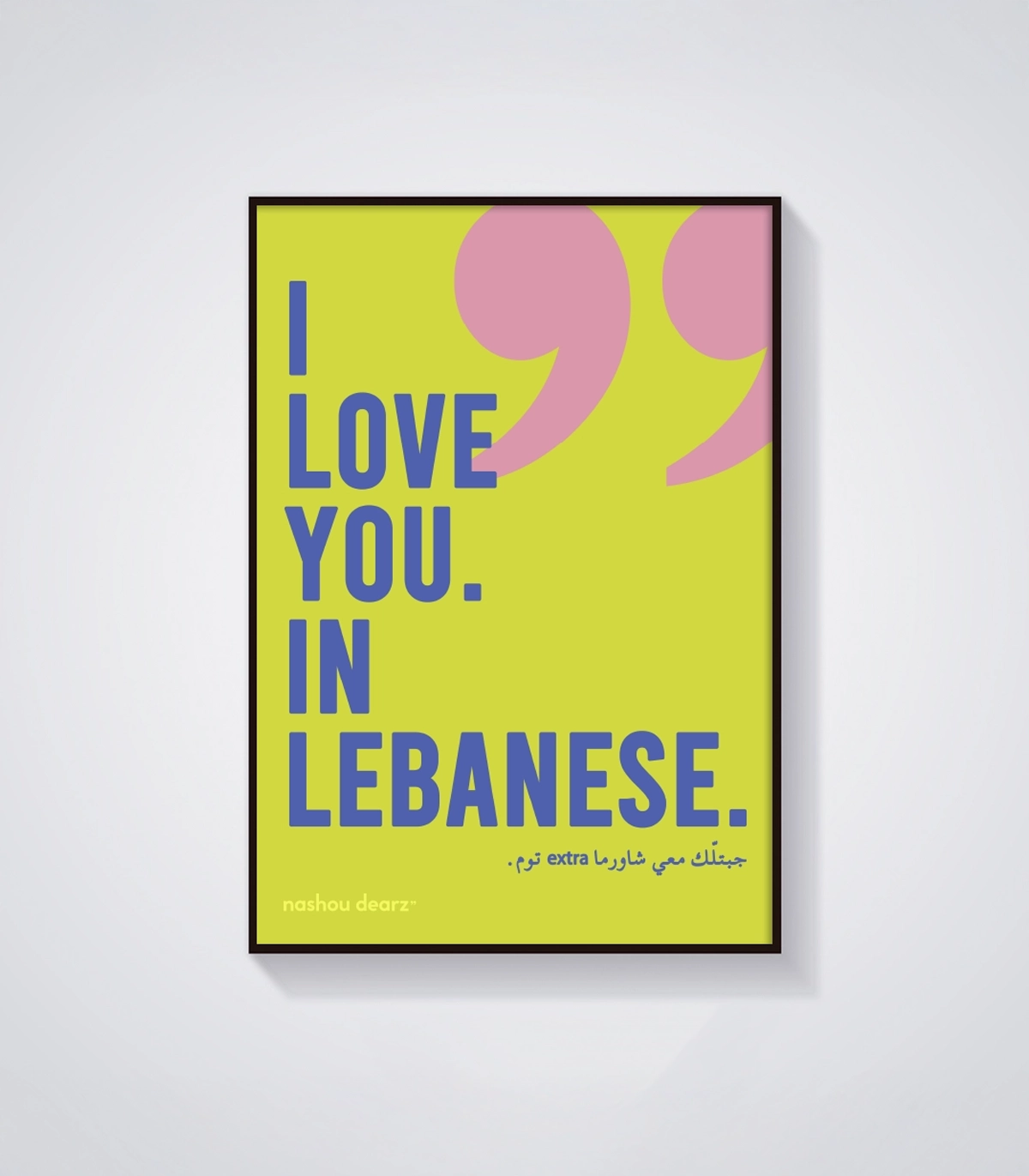 Bold, cheeky, and unmistakably Lebanese. This A3 poster pairs electric blue typography with a lime green popโand a line that says it all: