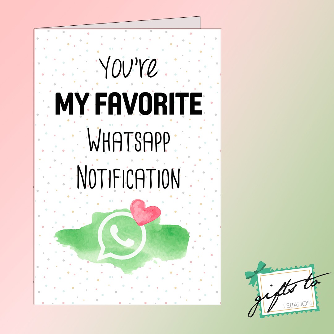 A greeting card which reads “You’re My Favorite Whatsapp Notification”