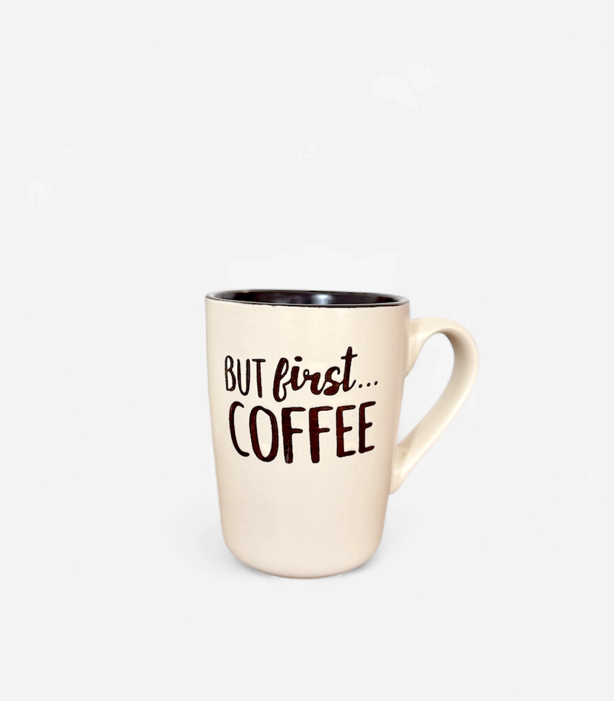 Ceramic โBut First Coffeeโ mug โ practical with a stylish edge