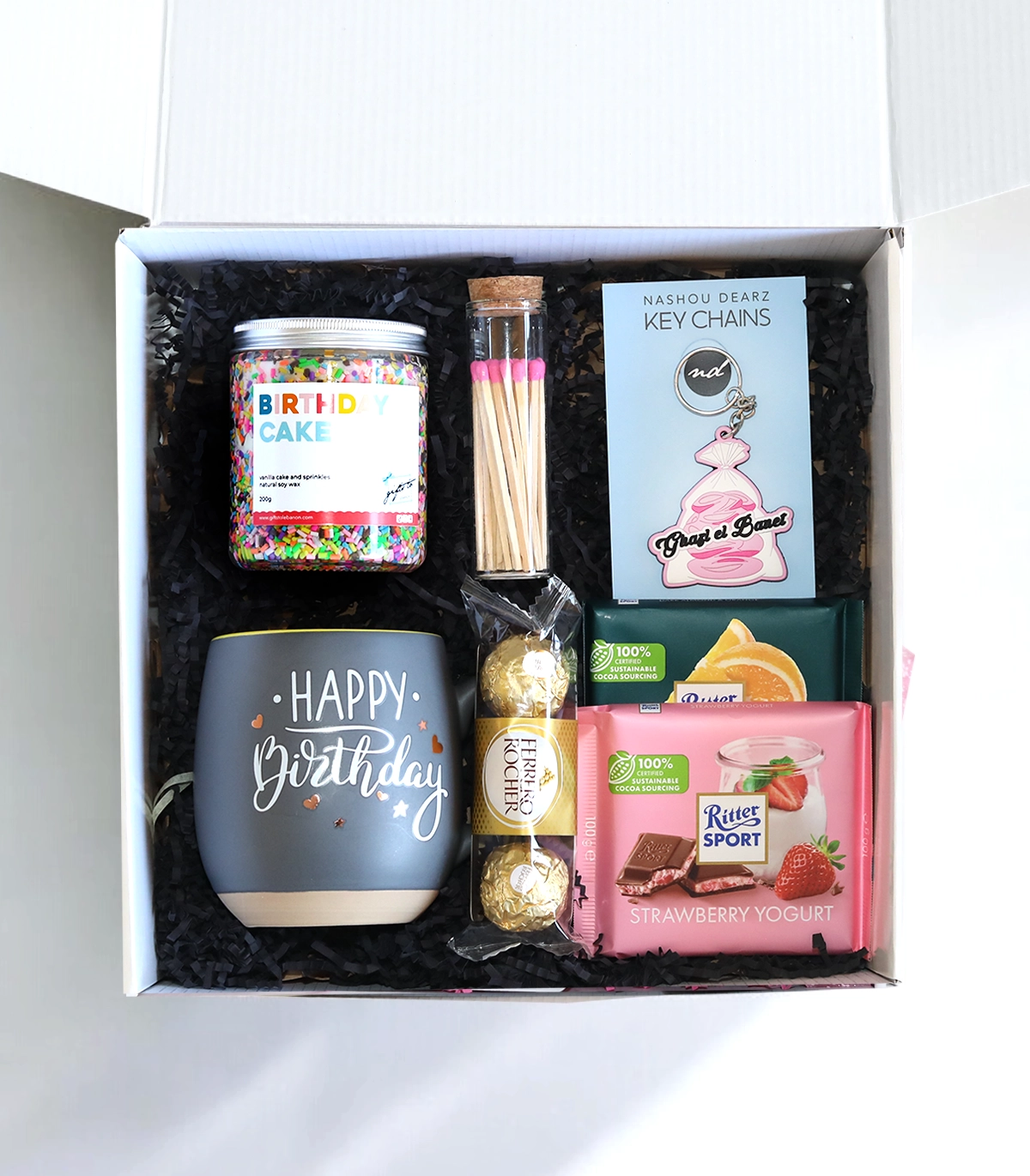 Make their birthday extra special with this thoughtfully curated gift box, filled with festive treats and charming keepsakes.