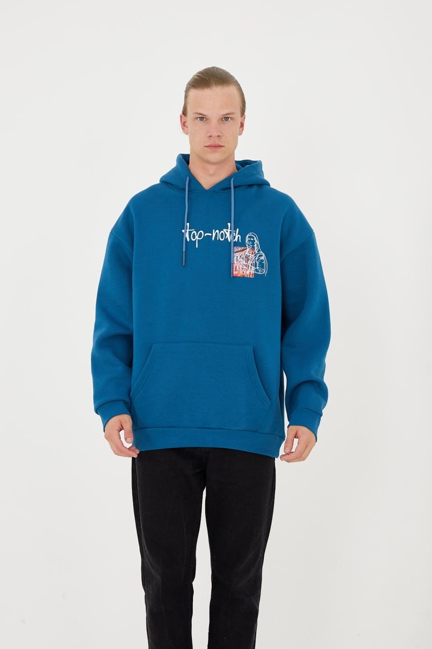 UNISEX “Top Notch” Oversized Mona Lisa Hoodie in Petrol Blue