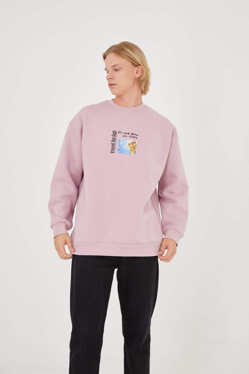 UNISEX VAN GOGH “Do Whatever Makes You Happy” Oversized Sweater in Pink