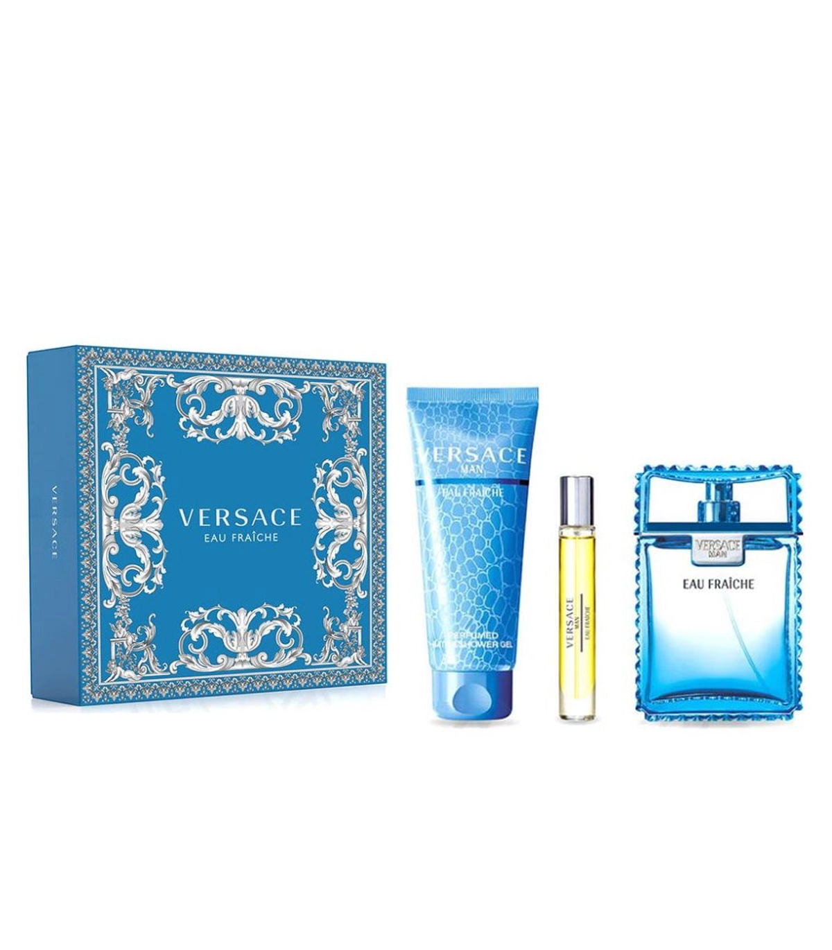 • Versace Man Eau Fraîche Eau de Toilette (100ml) – full-size bottle with citrus, woody, and musky notes