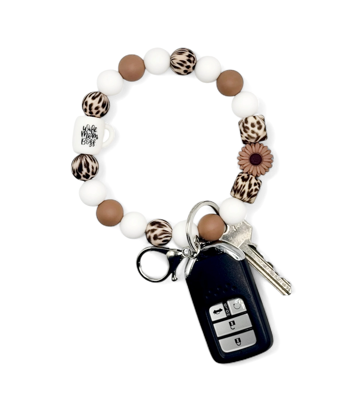 WIFE MOM BOSS Leopard Silicone Beaded Wristlet